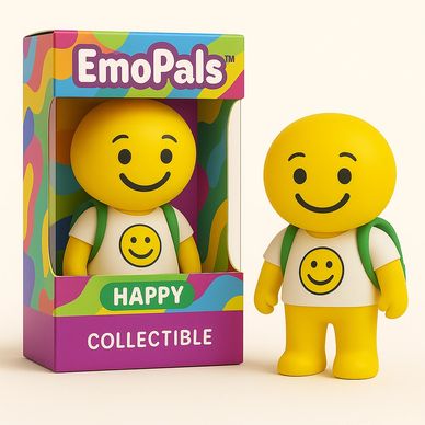 Optimistic, playful, and full of laughter. HappyPal™ spreads contagious energy that brightens every heart. His giggles create waves of joy strong enough to melt away sadness and fear. Catchphrase: “Let’s flip that frown around!”